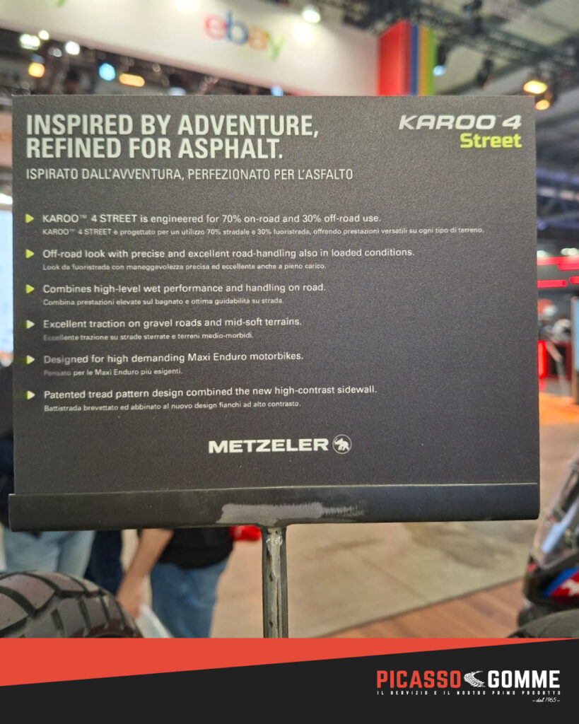 Per i possessori di Maxi Enduro, arriva il nuovo Metzeler Karoo 4 Street. Ispirato al mondo dell’off-road, questo pneumatico è stato perfezionato per offrire il massimo delle prestazioni sull’asfalto, senza temere i fondi misti: